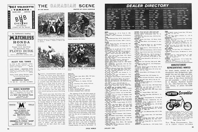 THE participation of eleven Canadian riders in the Daytona A.M.A. races indicates the interest in this event. Don Haddow (Triumph) of Toronto set a new amateur time trial record, riding the identical machine with which Bill Sharpless set the record last year. Sharpless (Triumph), also from Toronto, led the amateur race for over half the distance before being involved in an accident resulting in a broken thigh. Haddow retired with machine trouble, and Denton Craig (BSA) from Ottawa was motoring well in second when his chain seized. However some of our Canadian riders did have better luck as two Montreal BSA riders, Yvon Du Hamel and Steve Kowalyk finished 11th and 19th respectively in the amateur.